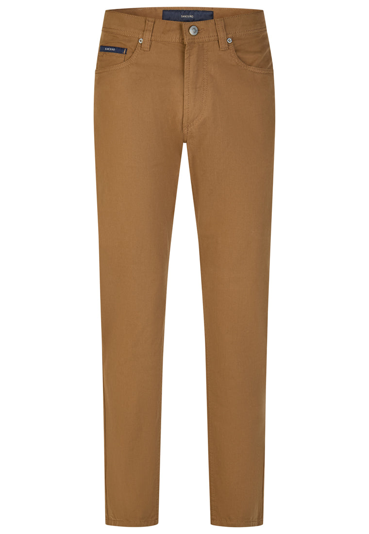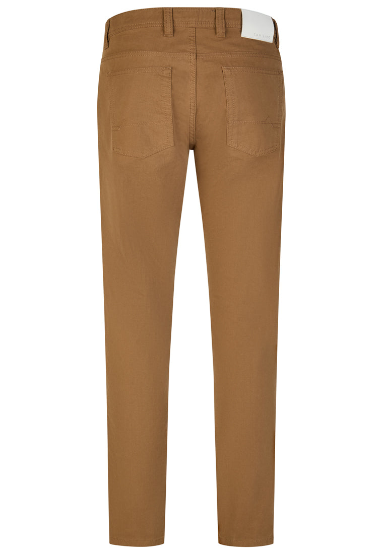 Die Micro-Peach-Ausrüstung verleiht der Oberfläche einen soften, angenehmen Griff, während Diamant-Schmirgel und Ringgarn-Fertigung für eine edle Optik und langlebige Qualität sorgen. Der feine Twill sorgt für klassische Eleganz und verleiht der Hose einen gepflegten, vielseitigen Look. Ob Büro, City oder Freizeit – die 5-Pocket kombiniert Stil, Komfort und Funktionalität perfekt.