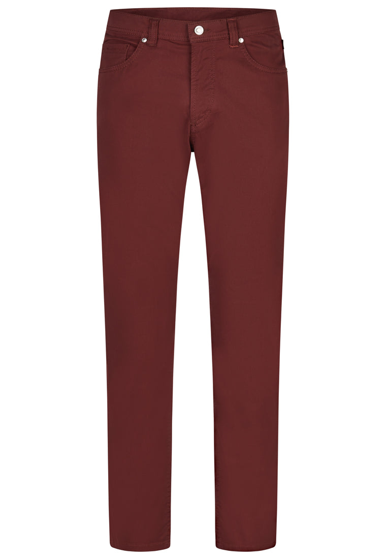 B. Bros - Diese 5-Pocket-Hose aus hochwertigem Pima-Satin überzeugt mit moderner Optik und außergewöhnlichem Tragekomfort. Die feine, leichte Textur fühlt sich samtig weich auf der Haut an und sorgt für ein angenehmes, ausgeglichenes Tragegefühl. Dank der Stretch-Qualität bietet das Modell uneingeschränkte Bewegungsfreiheit und einen perfekten Sitz.