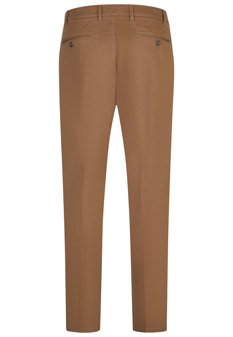 Die Micro-Peach-Ausrüstung verleiht der Oberfläche einen soften, angenehmen Griff, während Diamant-Schmirgel und Ringgarn-Fertigung für eine edle Optik und langlebige Qualität sorgen. Der feine Twill sorgt für klassische Eleganz und verleiht der Hose einen gepflegten, vielseitigen Look. Ob Büro, City oder Freizeit – die Chino kombiniert Stil, Komfort und Funktionalität perfekt.